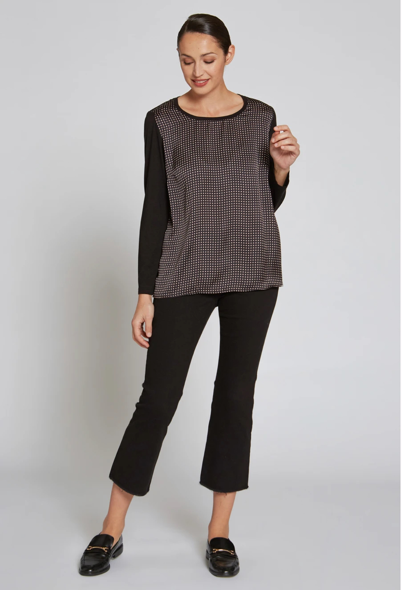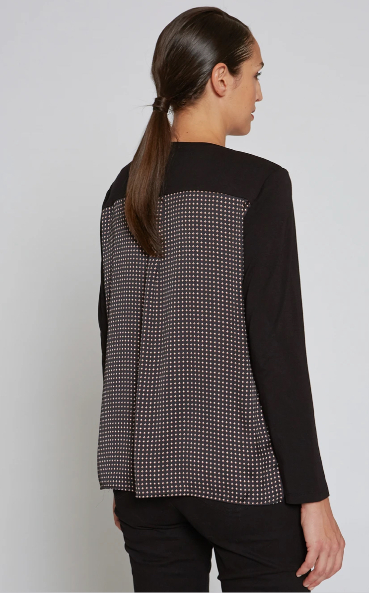 Blusa in jersey di viscosa Elastan, con davanti e dietro stampato in raso