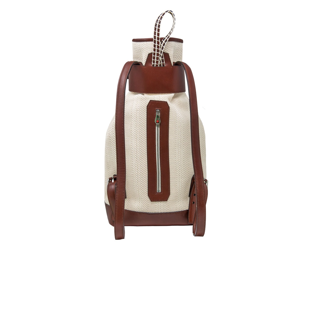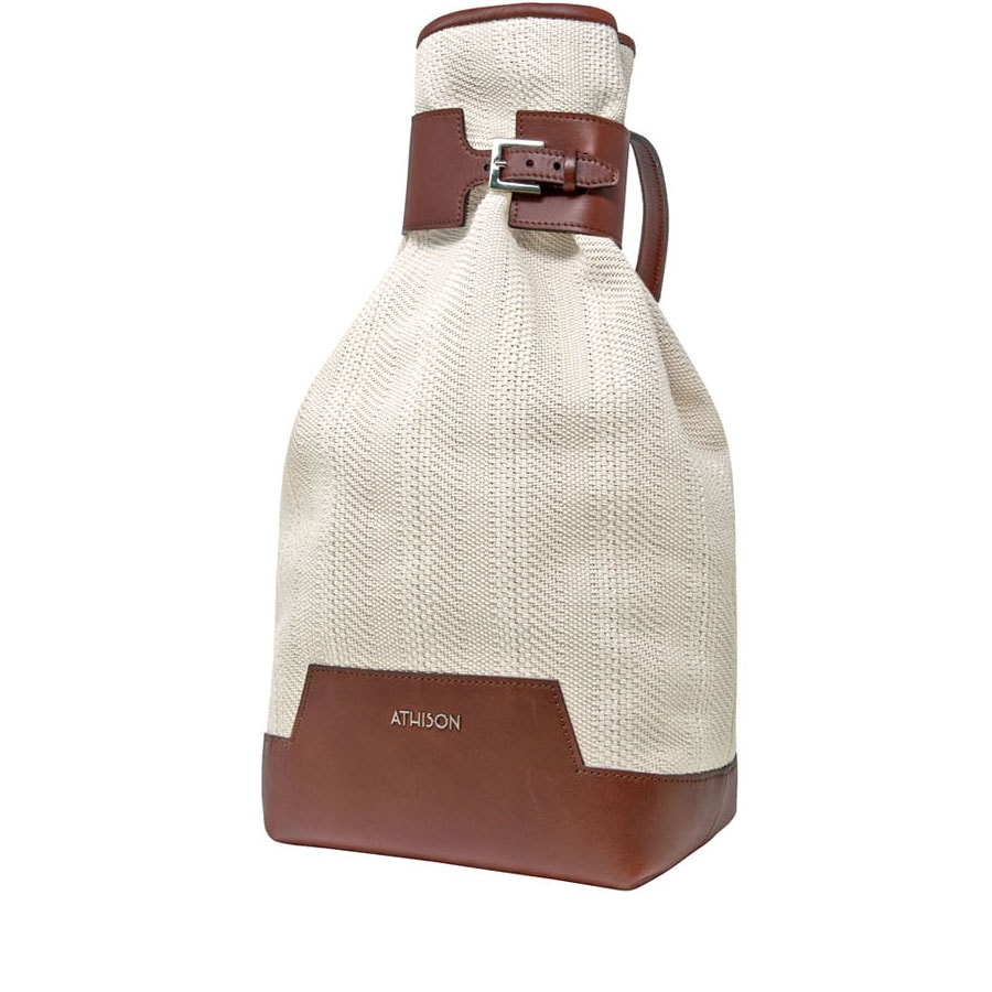 CARATTERISTICHE: Unisex, manico in pelle e cotone intrecciato, doppia apertura, tracolla regolabile.